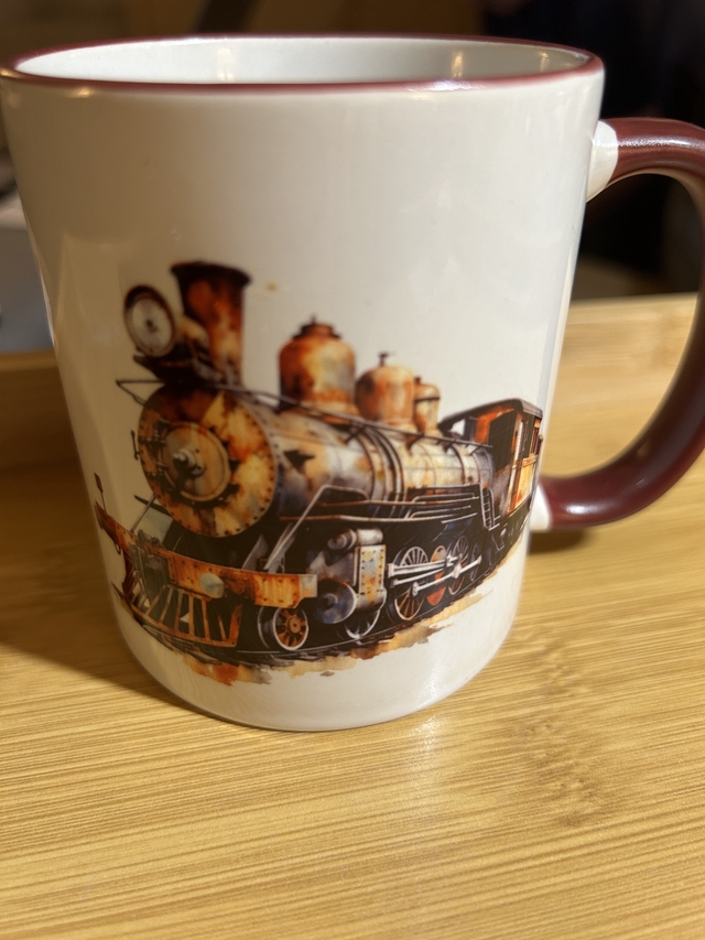 Drinking mug with the image of a train
